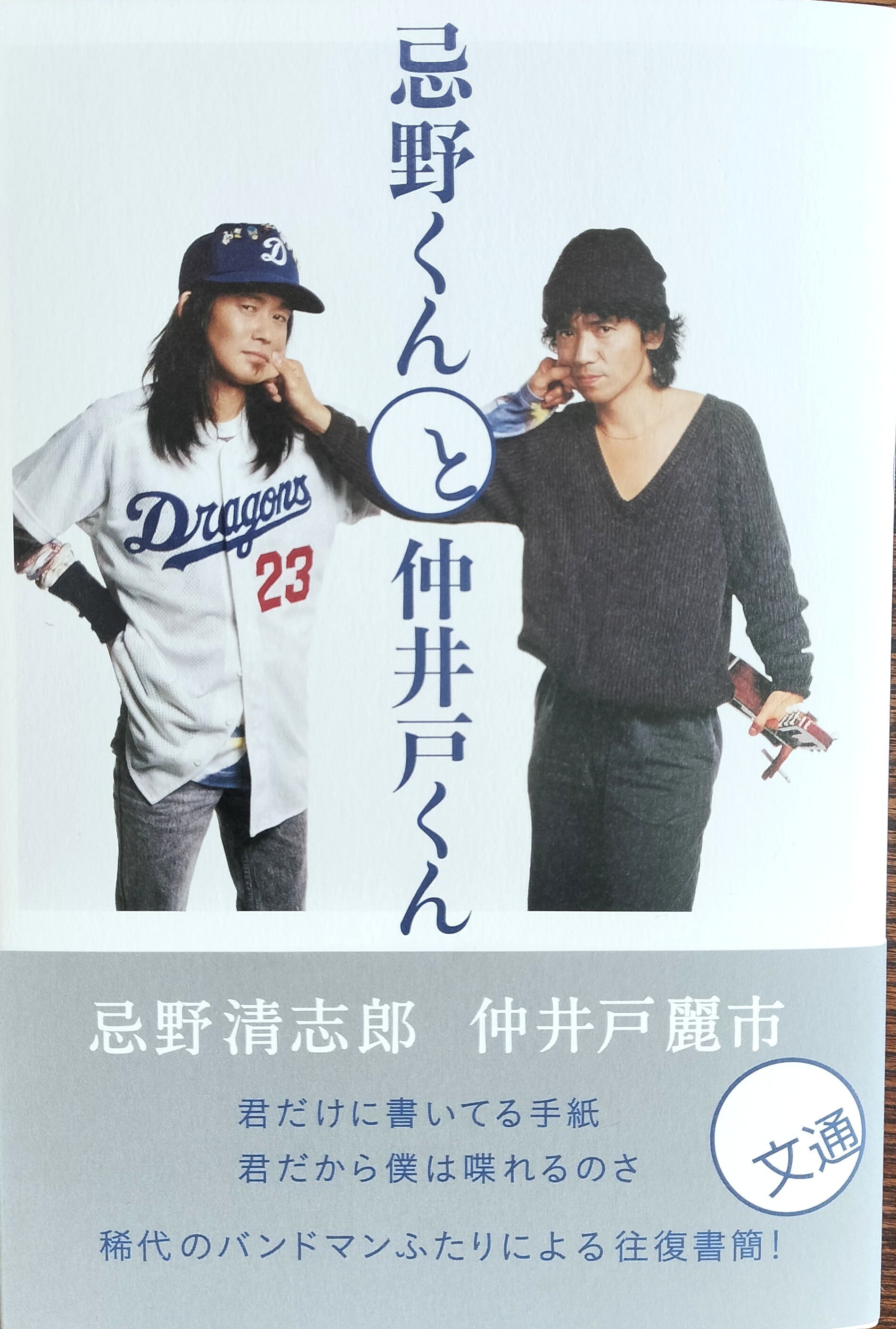 白い表紙に並んでいるのは、元RCサクセションのヴォーカル・忌野清志郎と、ギター・仲井戸麗一(チャボ)です。この2人の往復書簡が、雑誌「ロッキング・オン」の連載という形で世に出されたのが30年余り前。40歳を少し過ぎた頃でしょうか、2人とも少年のような表情です。音楽的には、RC解散後に清志郎がタイマーズ、チャボはソロ活動と、離れ離れになった2人ですが、長年の友人同士の気さくな雰囲気で手紙が交わされていきます。