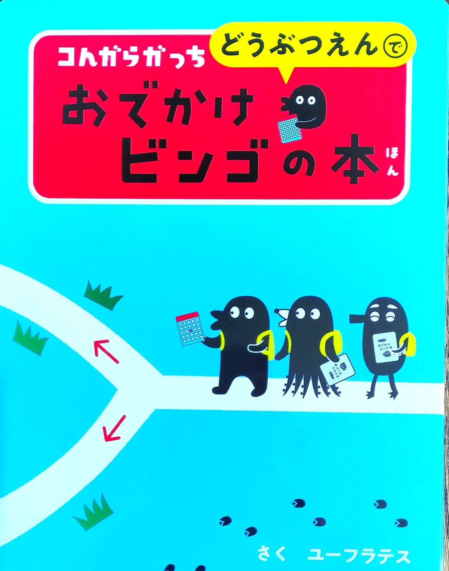 これは、ピタゴラスイッチに出てくるキャラクターの世界観でビンゴ遊びも楽しめる絵本です。ビンゴといっても穴あけではなく、赤い小窓をスライドして使うシステム。動物園で遊ぶときは、シートをなくさないように気を付けてね!